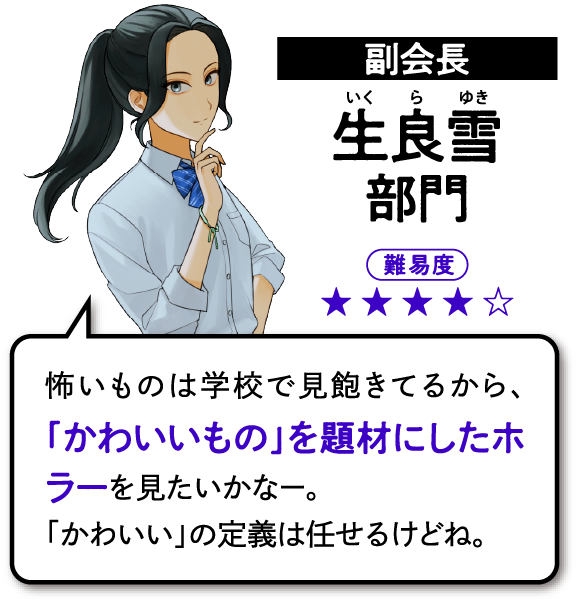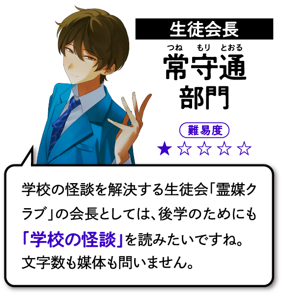 《怪異》を捏造する一般生徒 VS.《怪異》を解決する生徒会。そんな、およそ一年半ぶりの新作となる屁理屈推理ホラーバトルエンタメ学園小説の刊行にあたり、ささやかな催しを用意しました。さながらこの学校の生徒のように、生徒会の面々に挑戦するレイドバトルのような気持ちで挑んでみてください。彼らの無茶振りじみたお題を「解決」できた優秀な生徒の方々には、ささやかな褒賞も用意されているようです。皆さまがつくりだした怪異の数々を、いち読者として楽しみにしております。